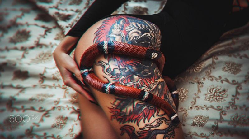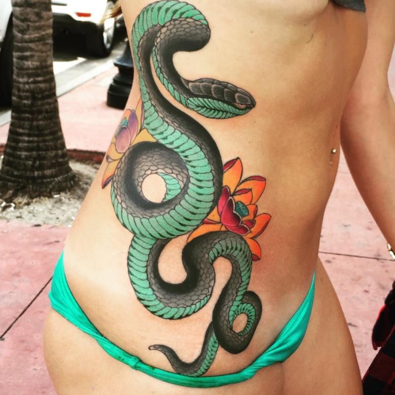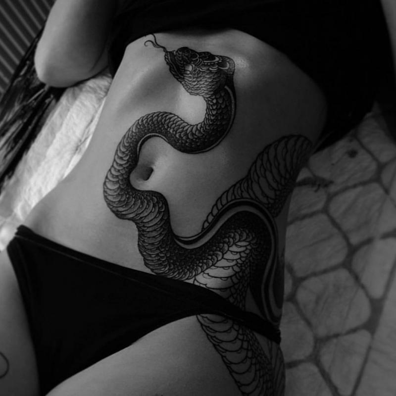 Тату змеи на теле девушки