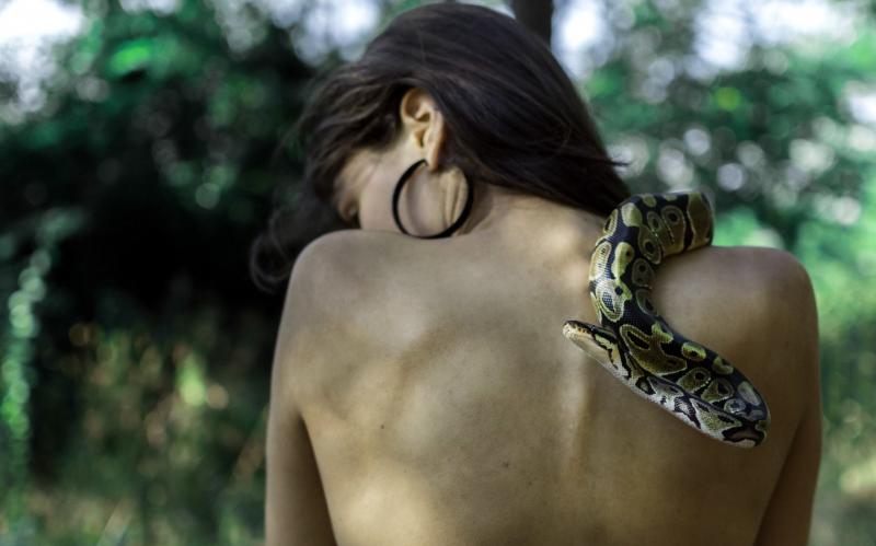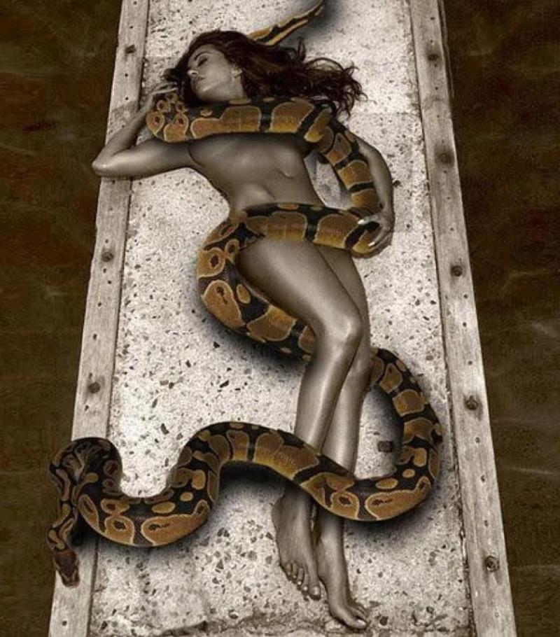 Змея обвивает девушку
