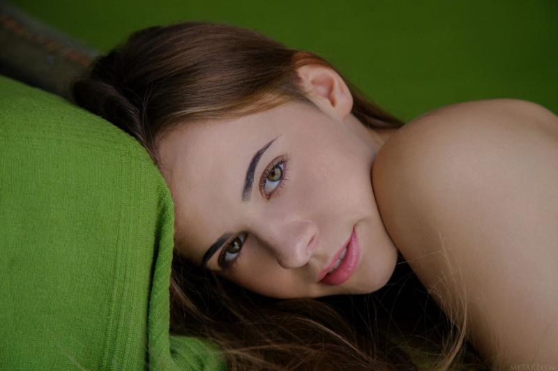 Голая брюнетка с зеленоватыми очами