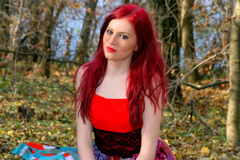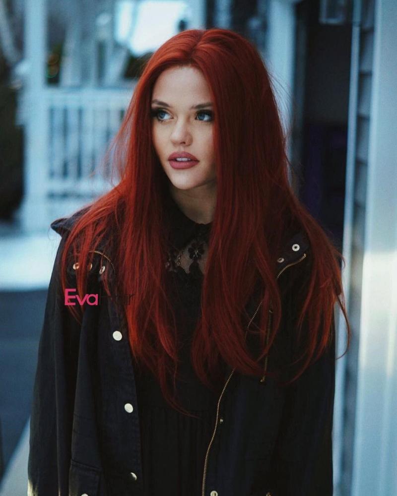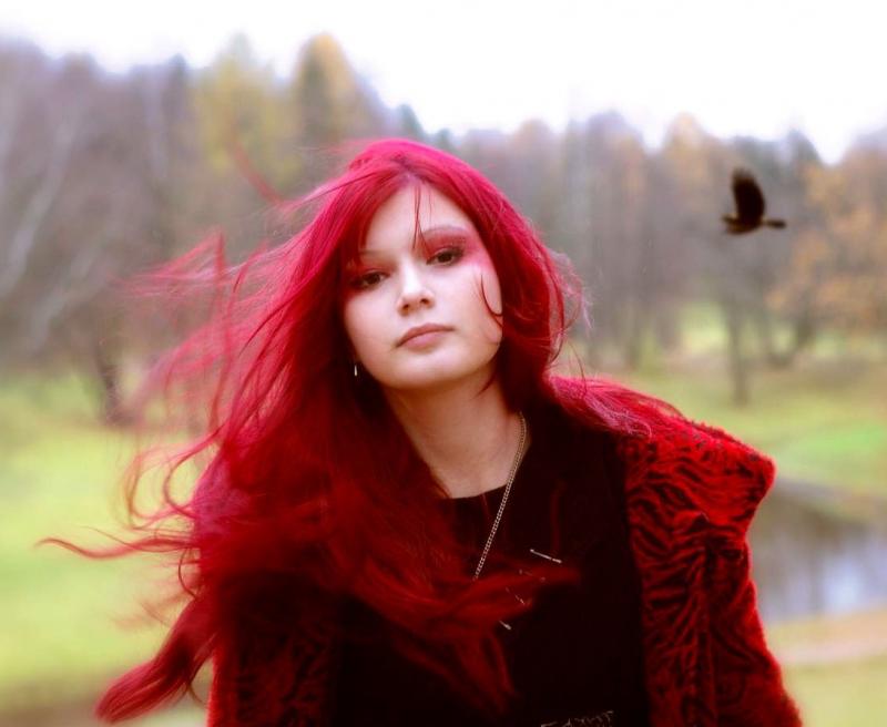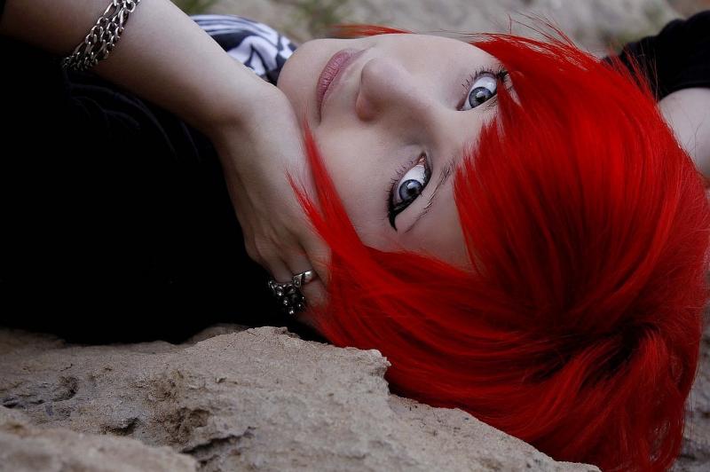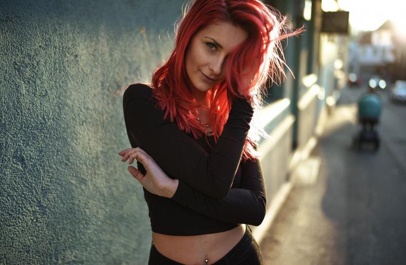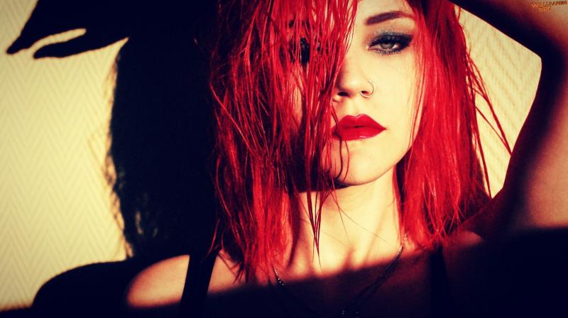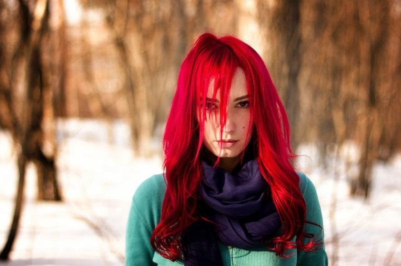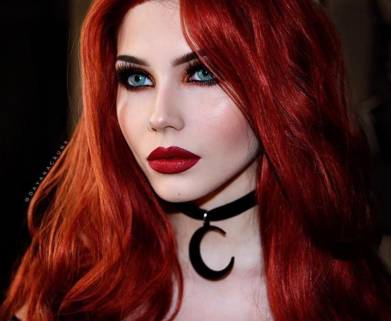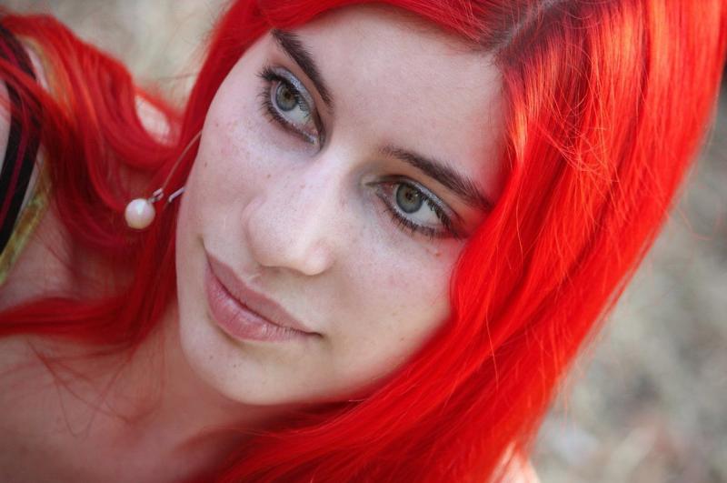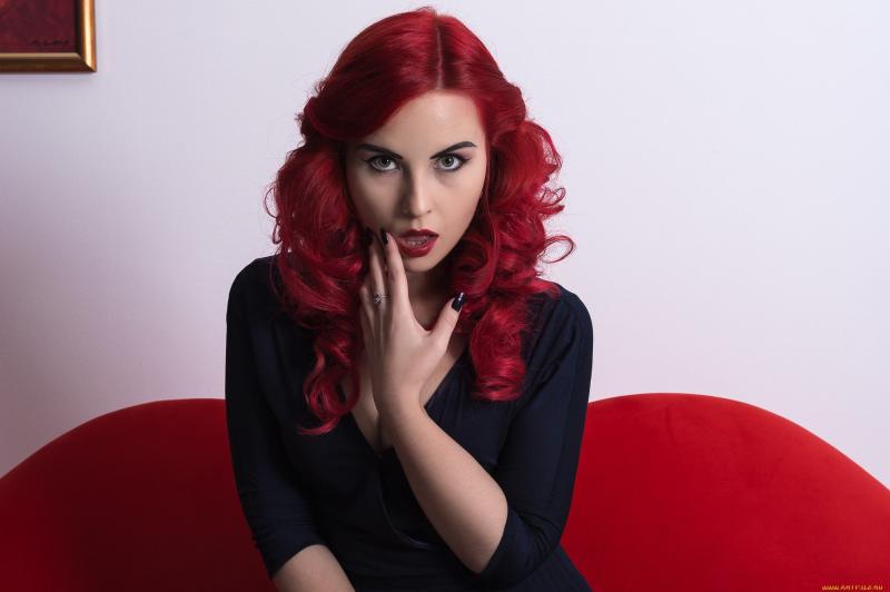 Девушка красотка с красноватыми волосами и зеленоватыми очами