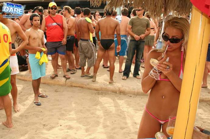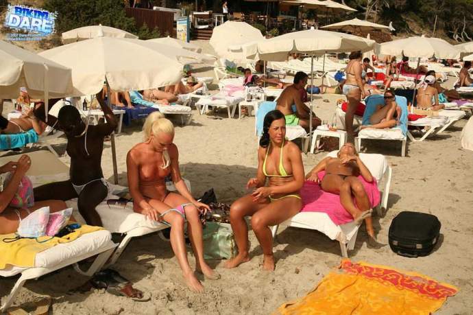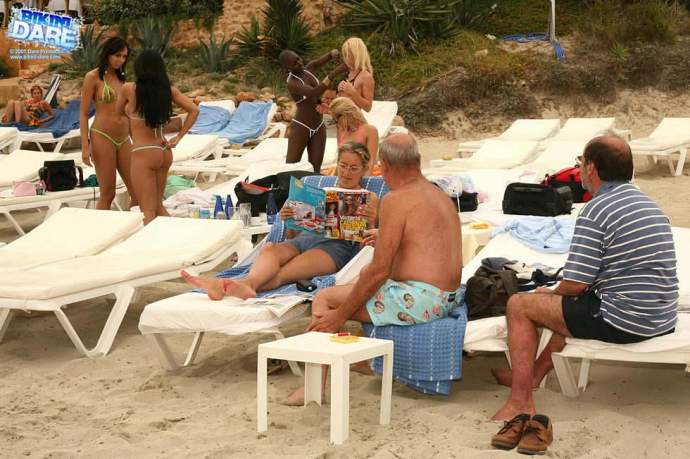 Наряды и купальники бывают разные, на этот раз мы подобрали очень модных женщин в ультра маленьких бикини, да можно сказать, что они вообще голые по пляжу гуляют.