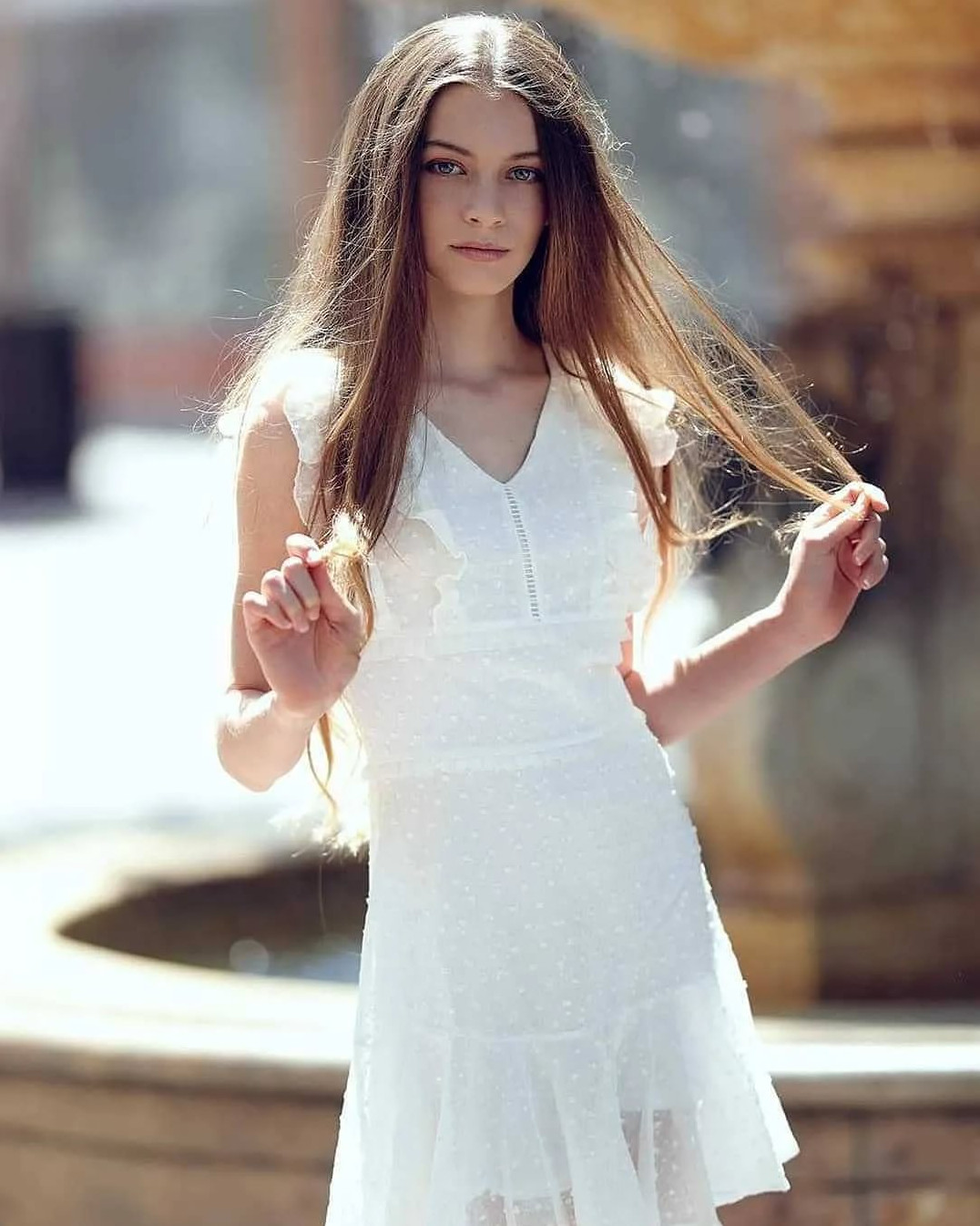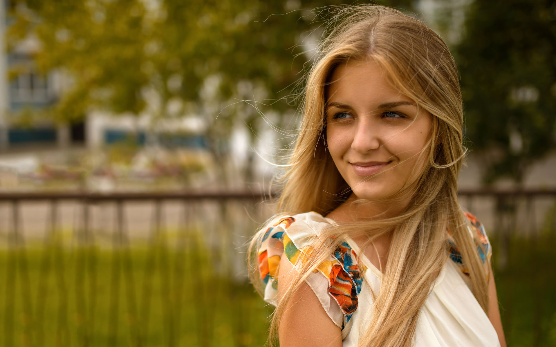 Девушка красотка с ямочками на лице. Красивая ухмылка.