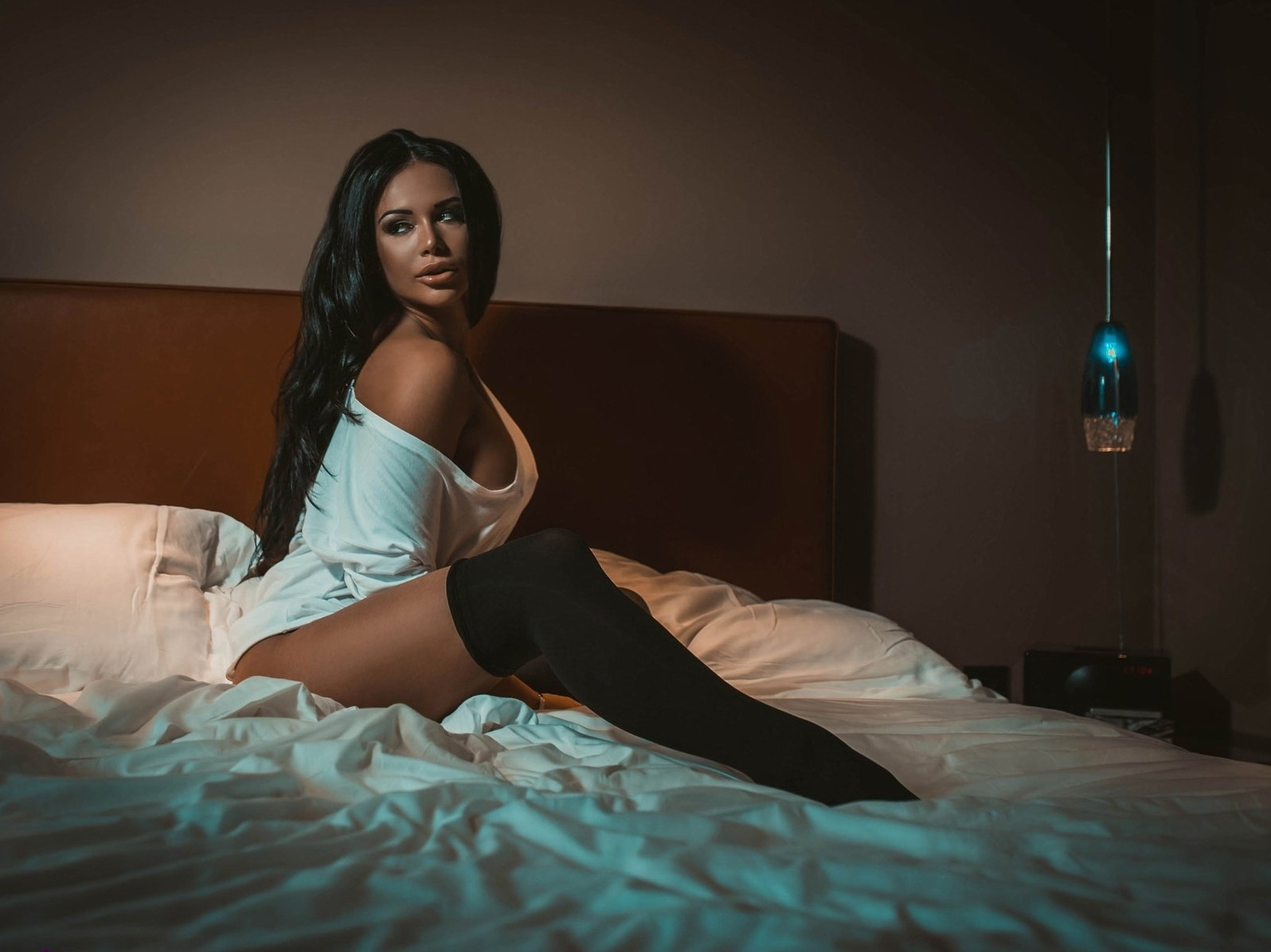 Жгучая девушка красотка в кровати.