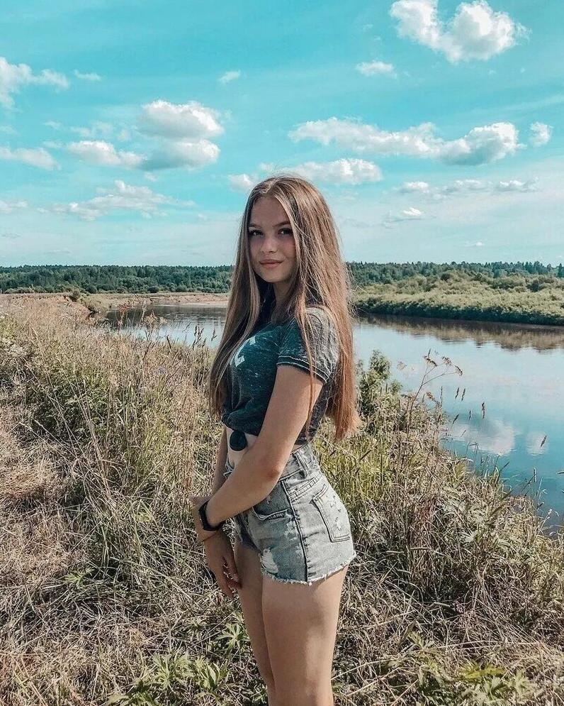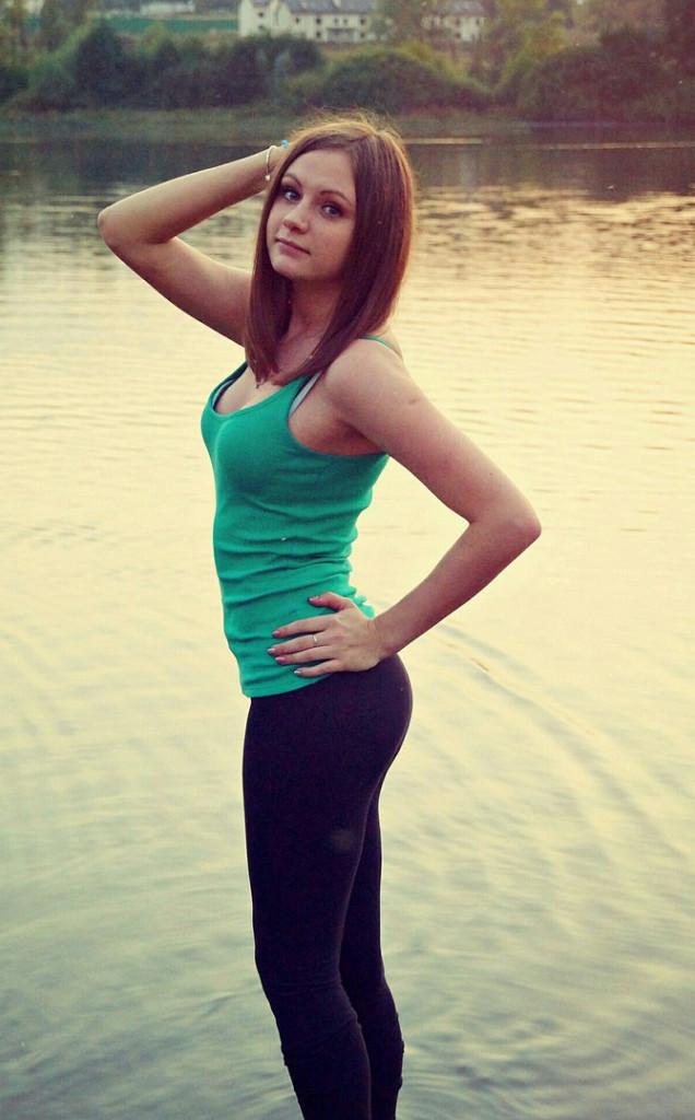 Девушка красотка и река.