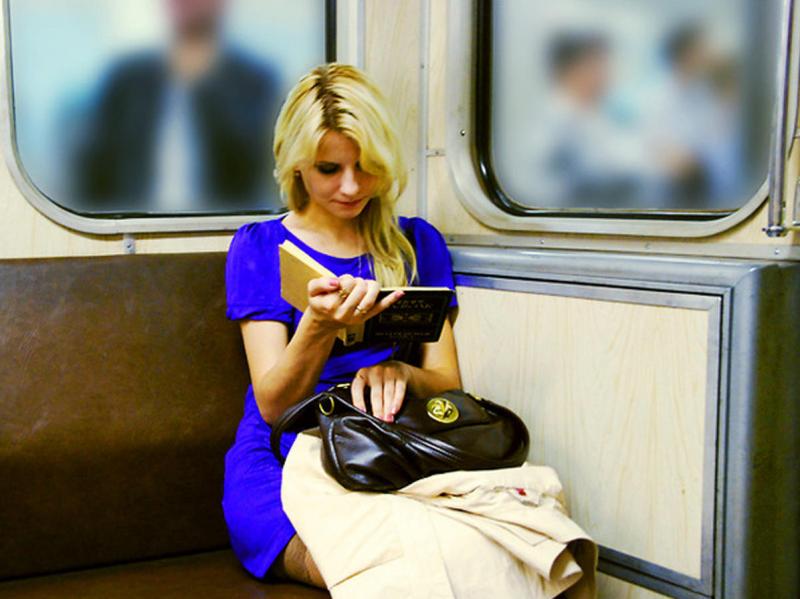 Привлекательная в метро.