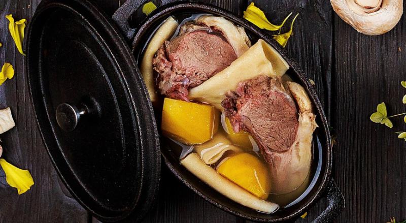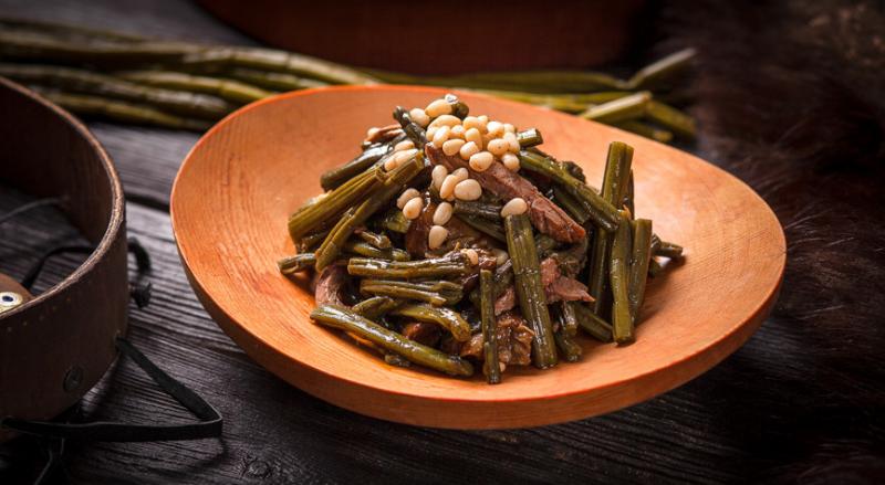 Салат - входят говядина, папоротник,кедровый орех, и т. д.
