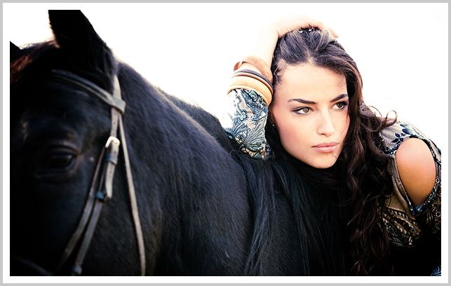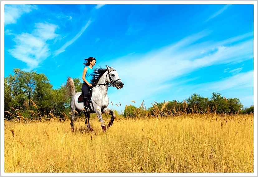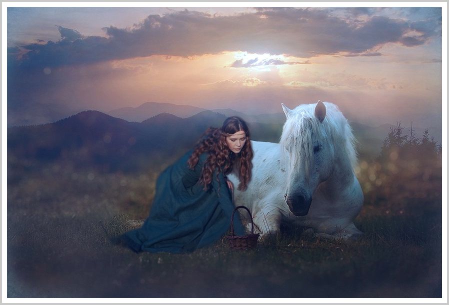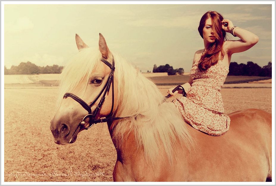 Молодые девушки на природе в платьях и с красивыми лошадьми