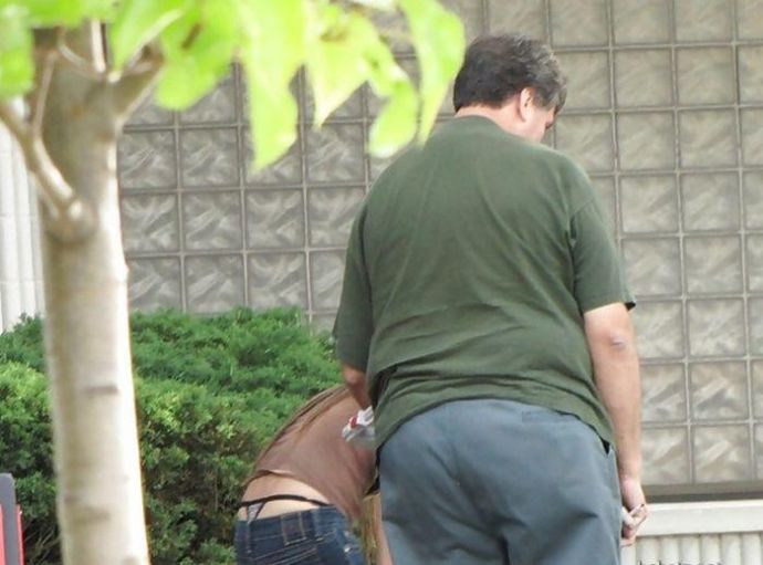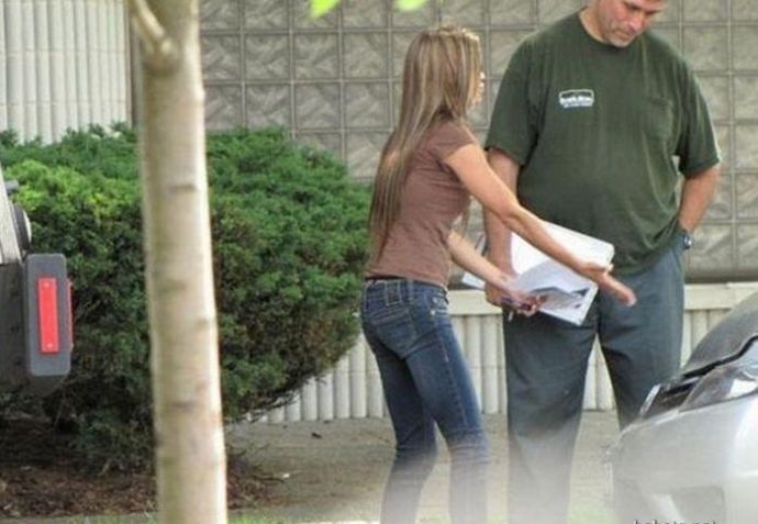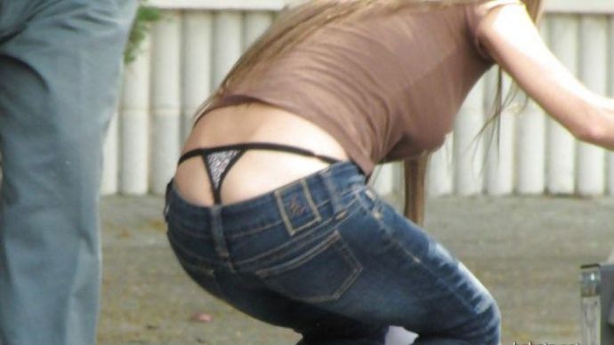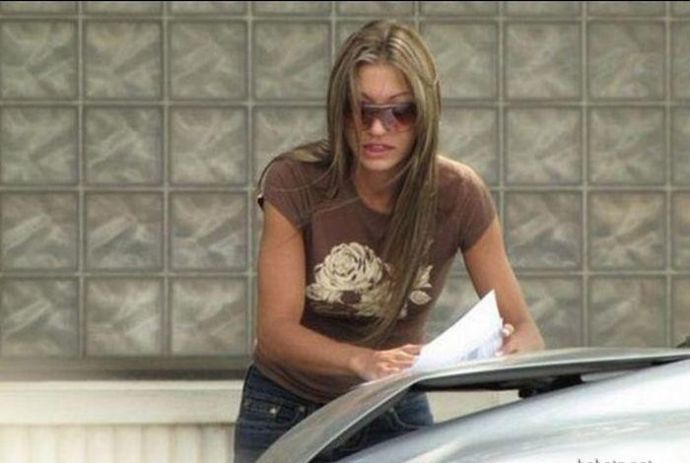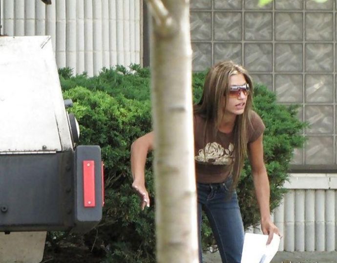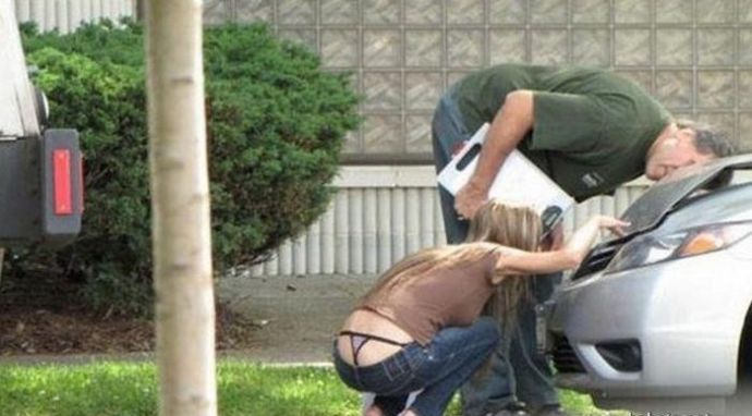 Она немножко поцарапала чужое авто и чтоб разрулить ситуацию пустила в ход низкую талию своих джинс.