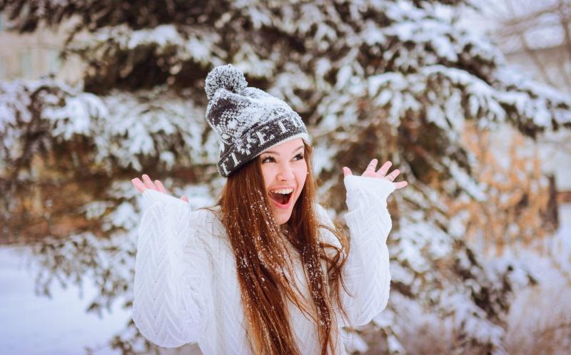Девушка красотка ухмылка зима
