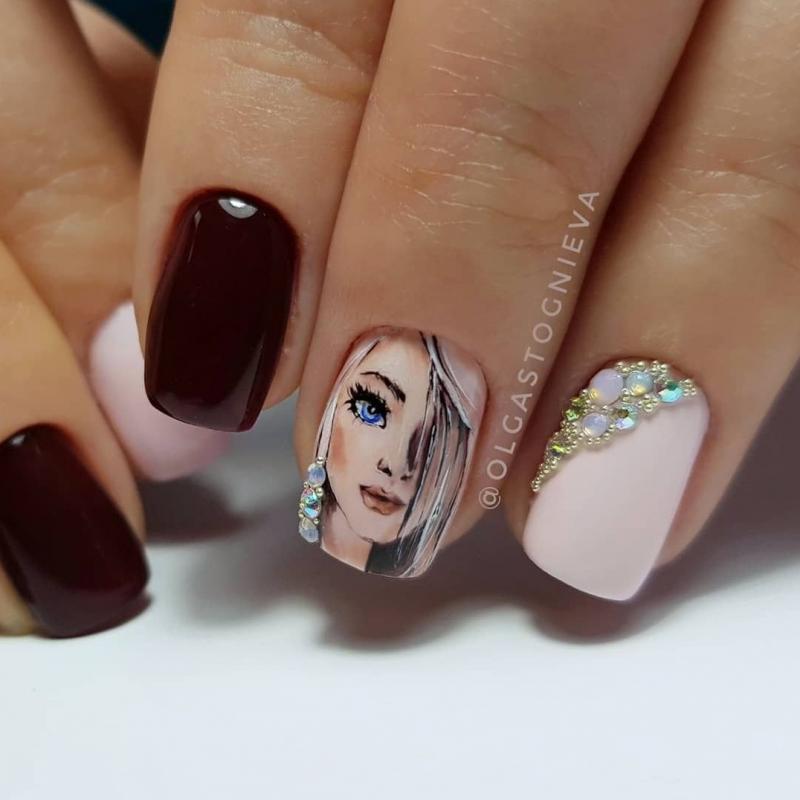 Маникюр с изображением девушки
