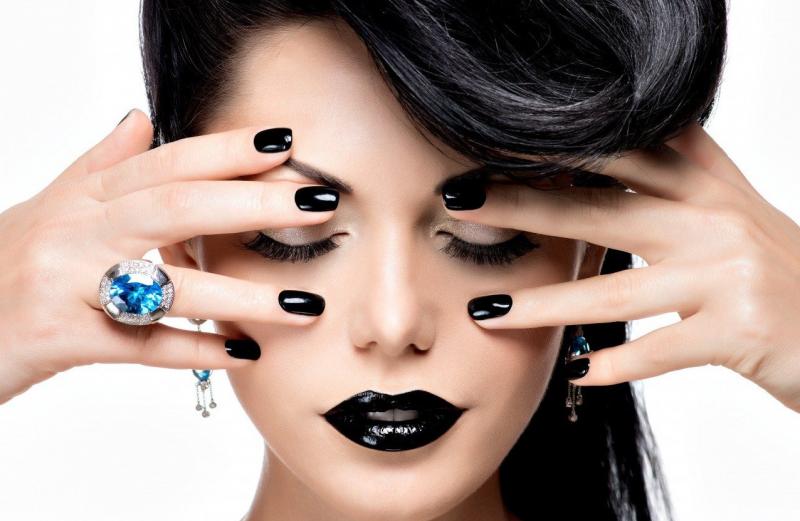 Девушка красотка с черным маникюром