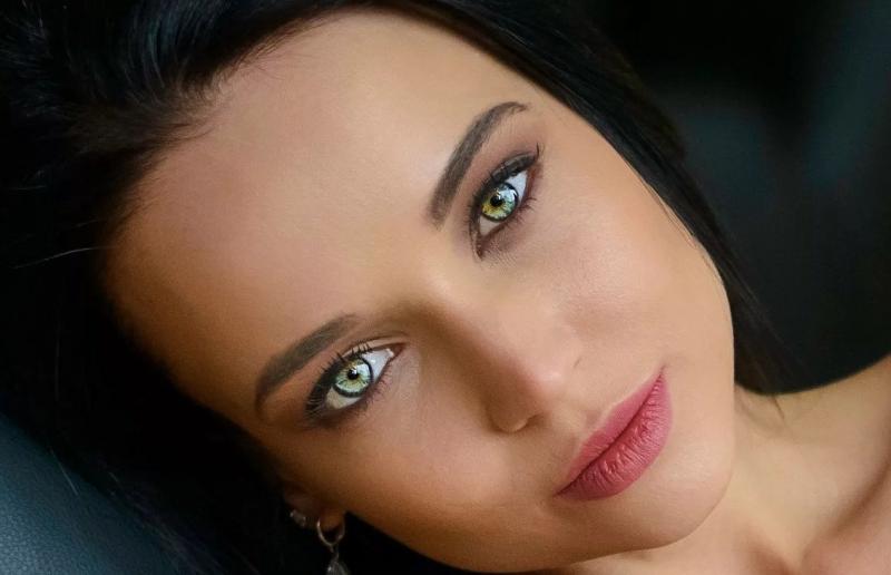Девушка красотка брюнетка с зеленоватыми очами