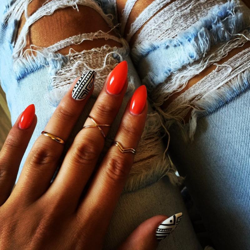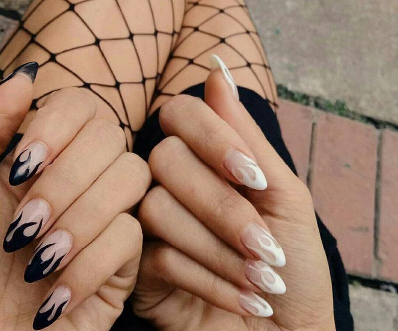 Маникюр на миндалевидные ногти с огнем