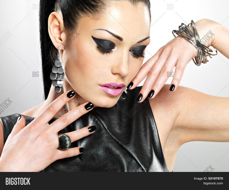 Девушка красотка с темными ногтями