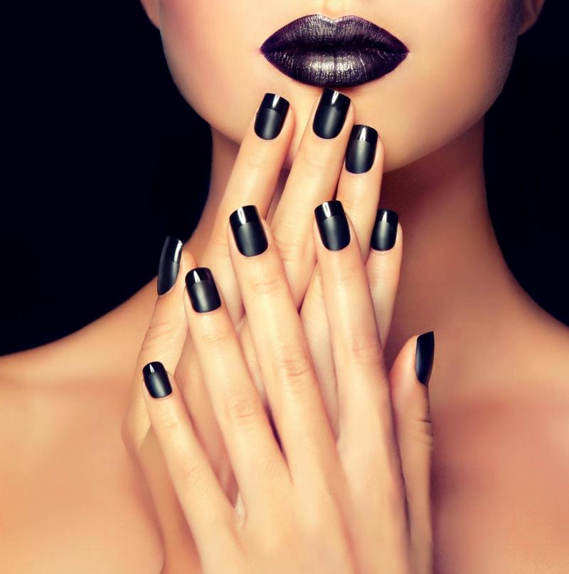 Очаровательные девушки с темными ногтями