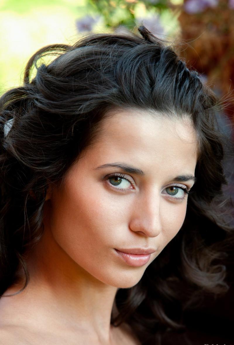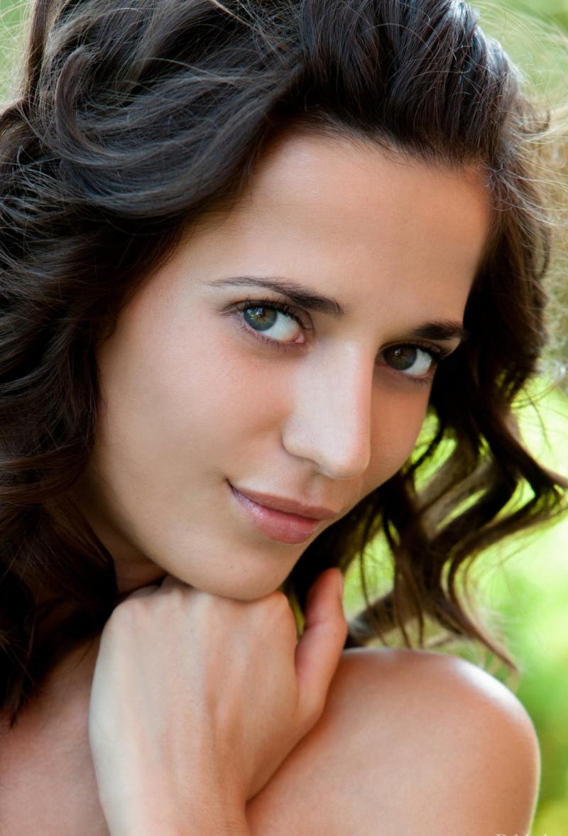 Во дворе загородного дома полностью обнаженная брюнетка с длинными красивыми ногами лежит на траве, демонстрируя свое сексуальное тело и нежно поглаживая себя руками. Иногда она мило улыбается, когда красавица открыто демонстрирует свою бритую киску с гладкими лобковыми волосами и возбуждающую попку, от которой трудно отвести взгляд.