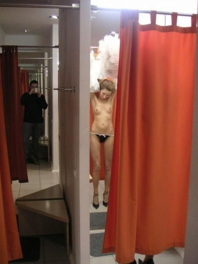 Симпатичные девушки купив нижнее белье, чтобы вечером удивить своего парня или новую короткую юбку, чтобы повеселиться на дискотеке, сначала должны его сфотографировать в магазине.