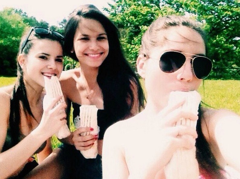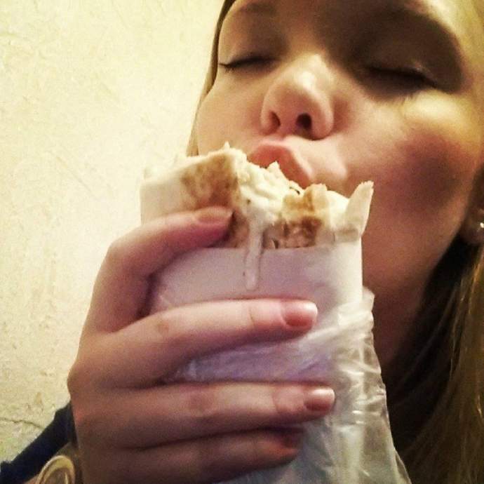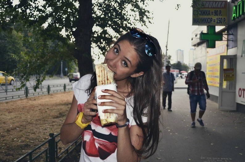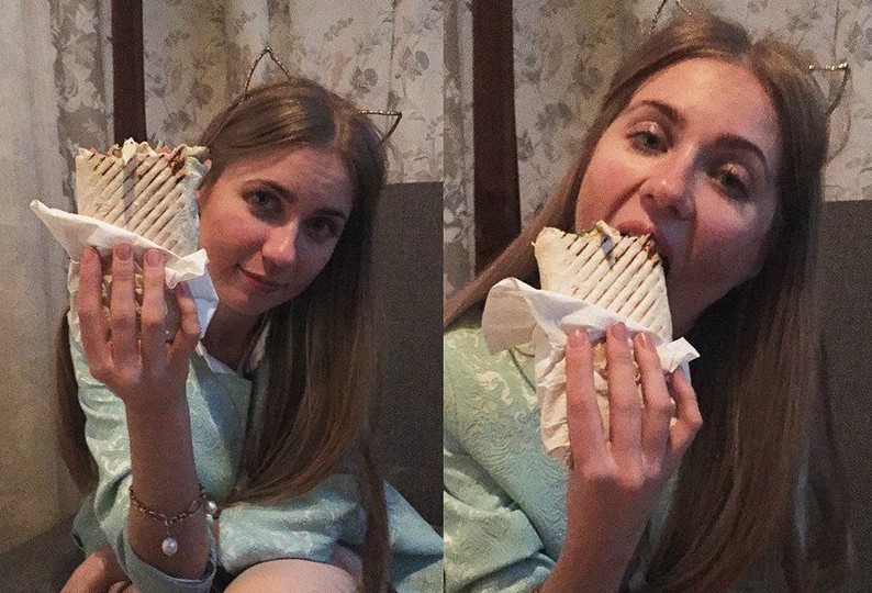 Пока западная блогосфера пестрит различного рода "challenge", любуется девушками, зажимающими колу между грудей и пугается мексиканского гадания на карандашах "Чарли, Чарли", в Руинтернете набирает популярность внезапный тренд, который мог показаться, пожалуй, только у нас: очаровательные девушки и шаурма.