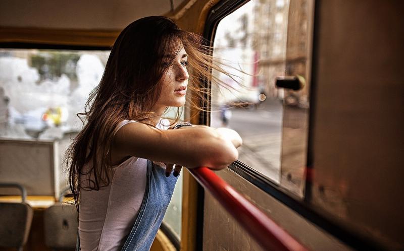 Фото девушка красотка в поезде у окна