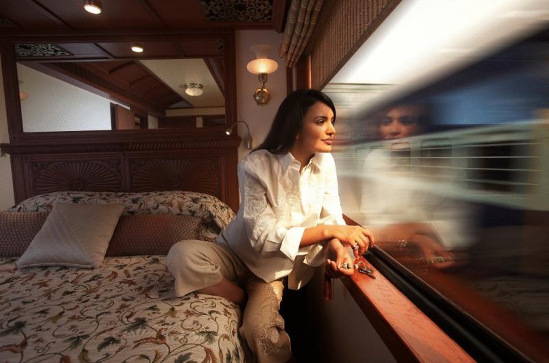 Девушка красотка в купе вагона