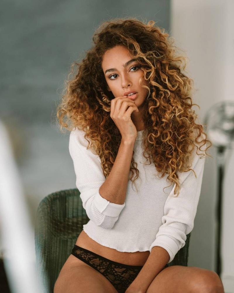 Очень сексуальная девушка красотка с вьющимися волосами.