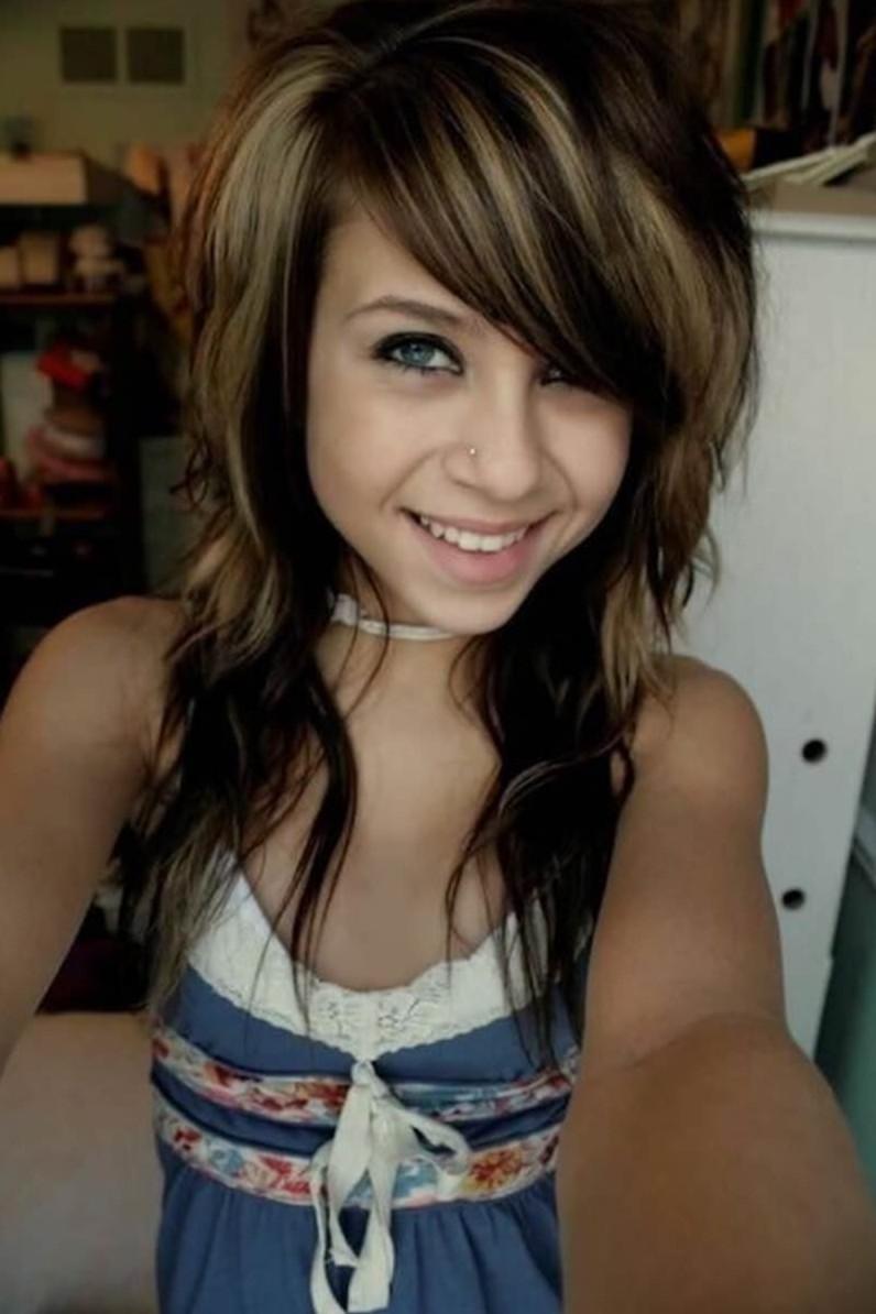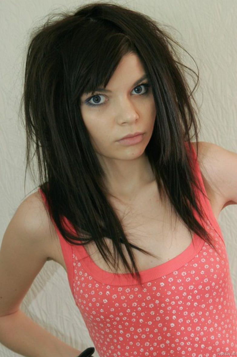 Стрижка эмо на длинные волосы без челки