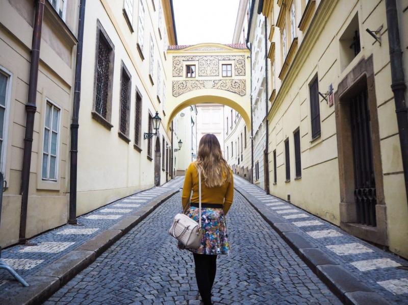 Девушка красотка в Праге со спины