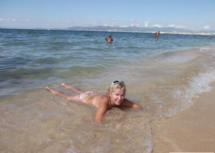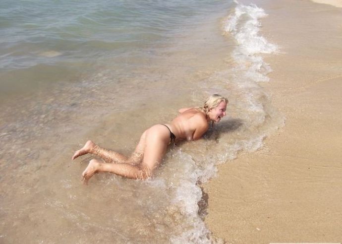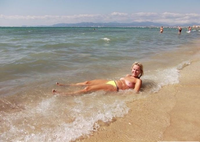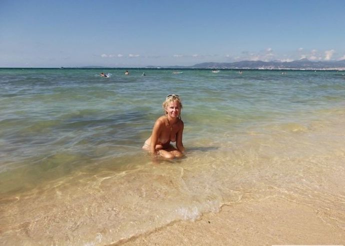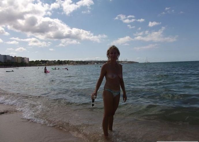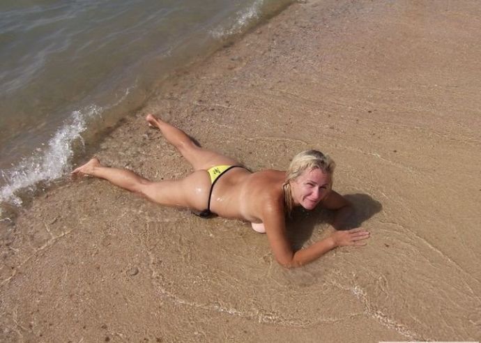Без стеснения снимается топлесс на фоне морских волн. Отличные натуральные фото без фотошопа. Стоит поглядеть – некие фото смешны. Дама отлично позирует в чулках в сетку и перед елкой.