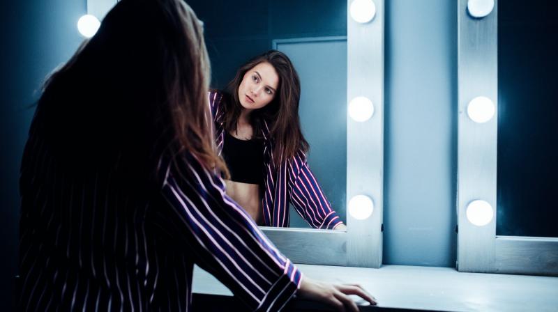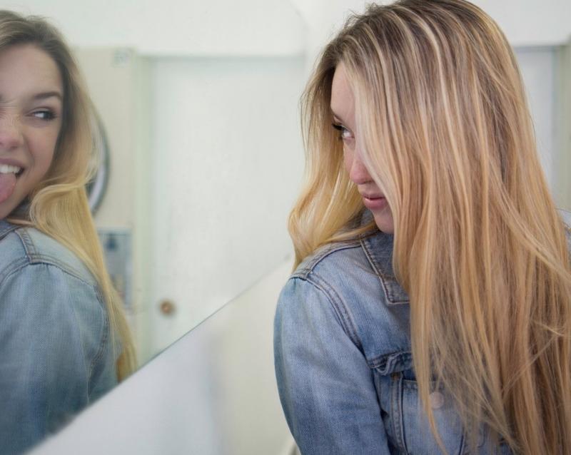 Отражение девушки в зеркале фото