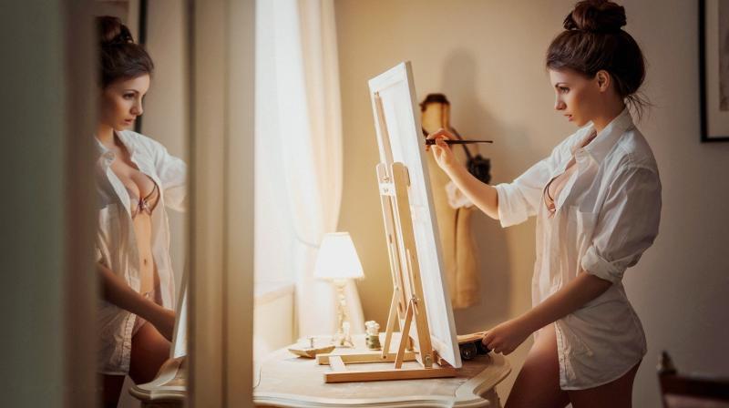 Рисунки девушка красотка перед зеркалом