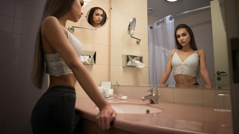 Фотосессия у зеркала девушки
