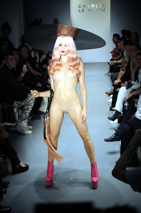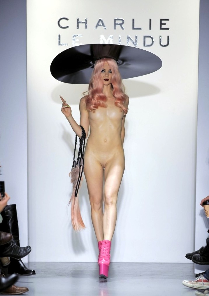 Это случилось 5 лет назад на недельке высочайшей моды в Лондоне. Скандальный модельер Charlie Le Mindu представил свою провокационную коллекцию. Не совершенно понятно что желал сказать мэтр, но общественная картина представления еще долго потряхивала публику.