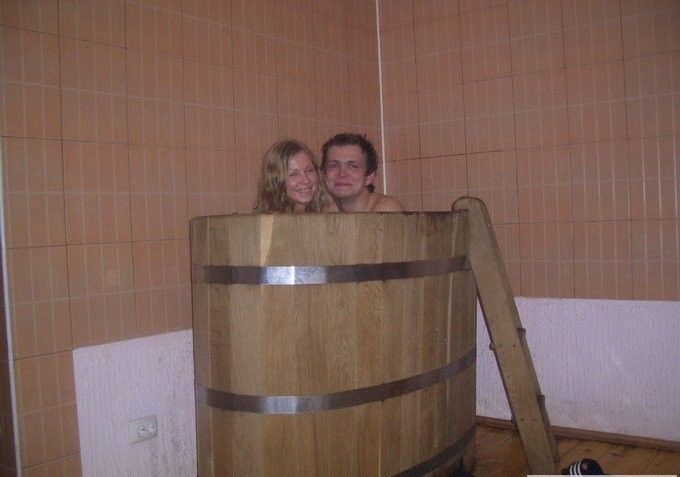Ничего пошлого молодая пара отрывается на выходных в сауне, я сейчас прям им завидую в трудовую неделю. А девушка очень красивая, самцу повезло с такой милой девушкой.