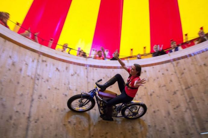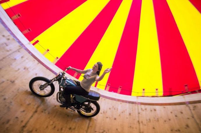Девушки на мотоциклах колесят по стене смерти