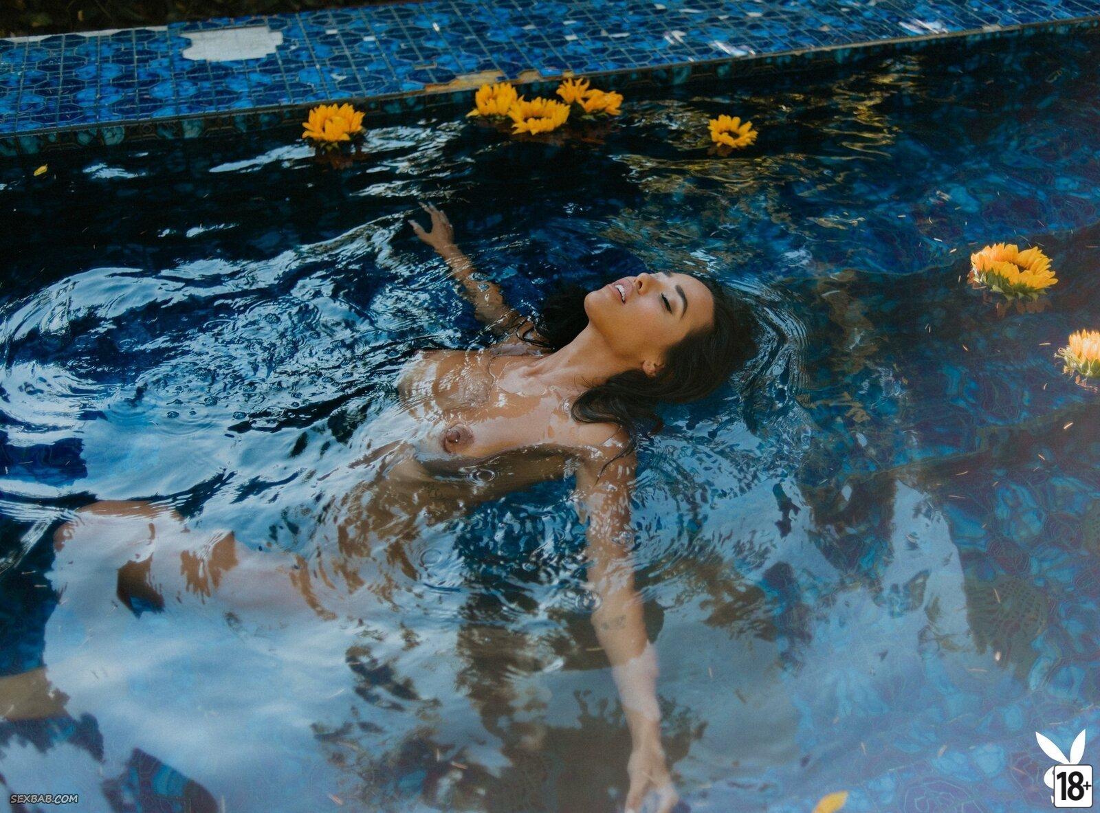 Сочная мулатка с аппетитной попой купается голой в бассейне