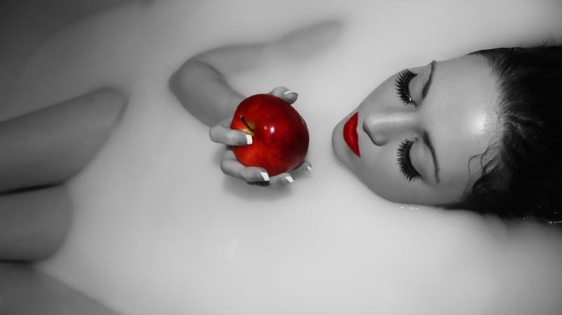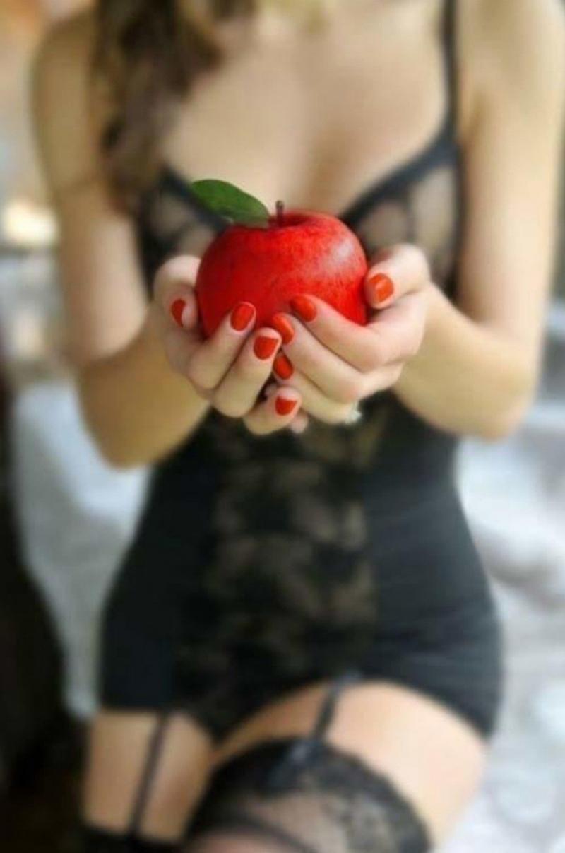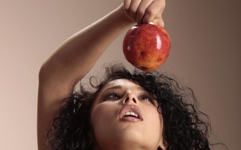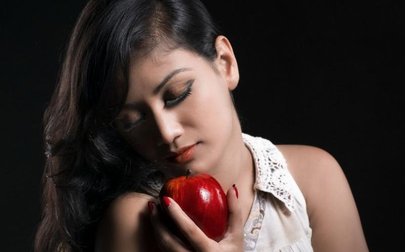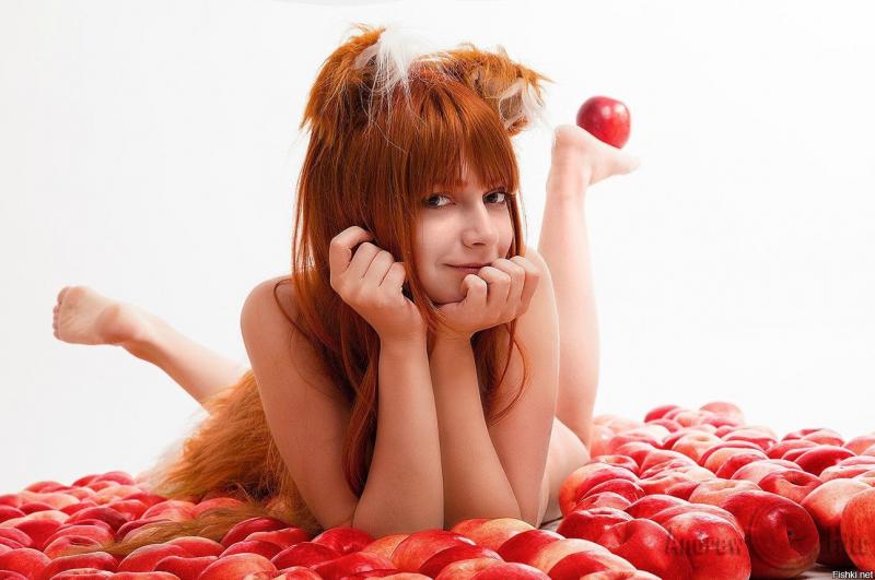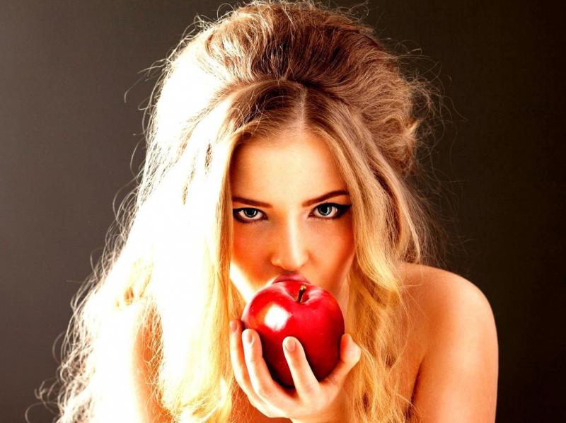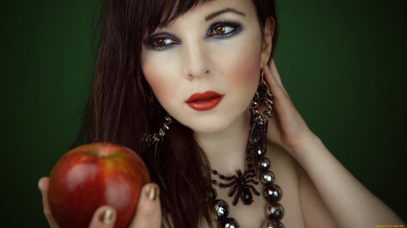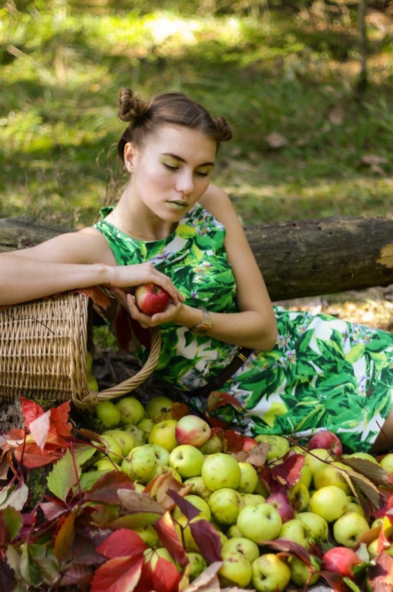 . На этих фотографиях мы видим очаровательную девушку, она как настоящая красотка! Но еще больше внимания привлекает то, что она держит в руках – красноватое яблоко. Кажется, что эта фотосессия посвящена фруктам и их связи с женской красотой. Такие креативные и роскошные фото можно найти только в студии, любимой дамой с яблоком на природе или в яблоневом саду. Не могу не отметить, как замечательно смотрятся на фото милые дамские портреты в компании с зелеными яблоками. Необычно и очень интересно! Но и на природе эта тематика выглядит очень красиво – фотосессия с корзиной яблок или девушка, с улыбкой е