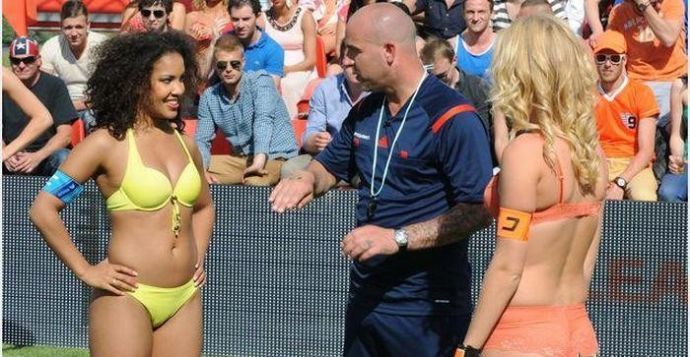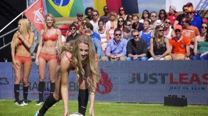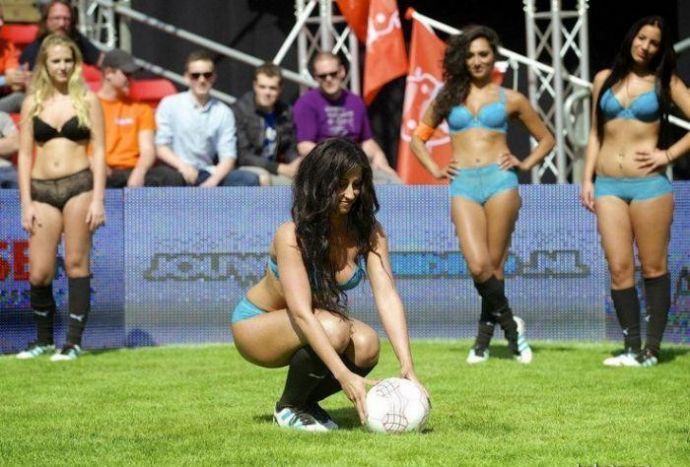 Полуголые девицы и футбол (24 фото) 16 декабря, 2020 709 Такой показ футбола от девушек и нижнего белья проводится в Нидерландах. 0 Рубрика: Футболистки / Женское белье