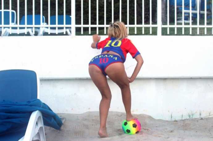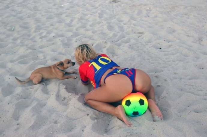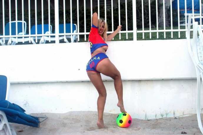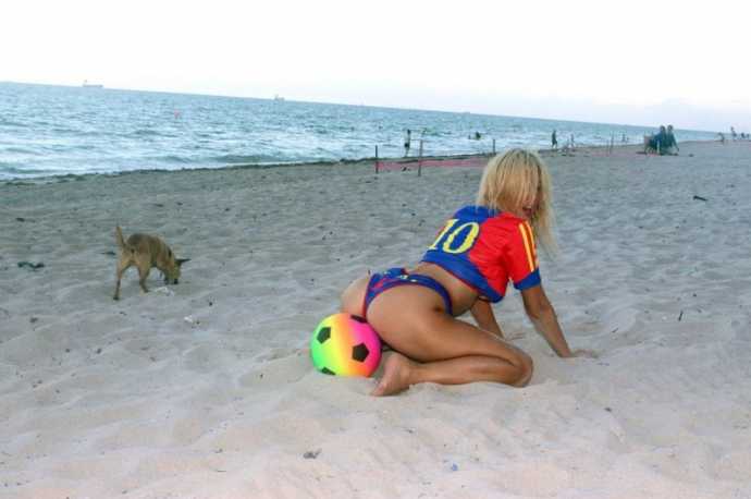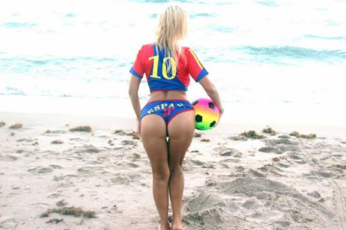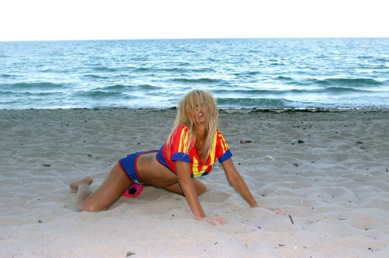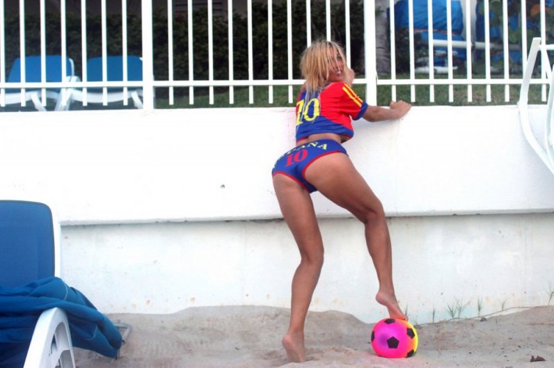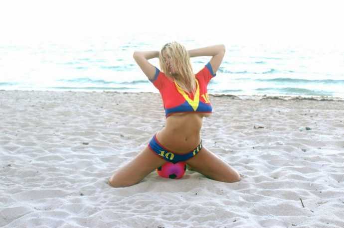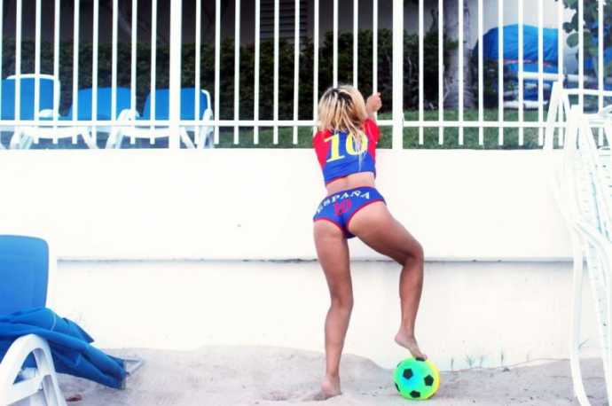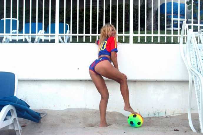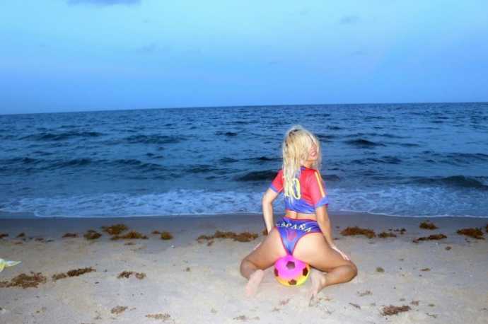30-летняя южноамериканская певица русско-французского происхождения Нади Волянова(Nadeea Volianova), которую еще называют «Российской Леди Гагой», отметила победу ФК "Барселона" фотосессией Майами.
