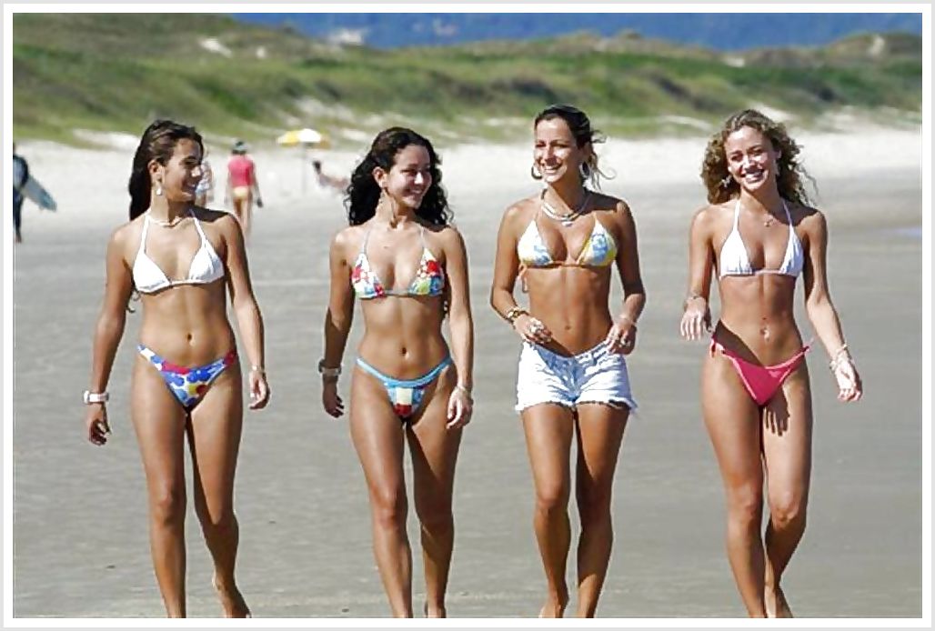 Крутые симпатичные девки на пляже возбуждают спортивных мускулистых кавалеров длинными стройными ногами и милыми улыбками на лице, когда думают о шикарном вагинальном сексе прямо на природе. Гламурные леди в купальниках и прямо в воде эротично стреляют взглядом и продолжают завлекать в страстные объятья неугомонных нетерпеливых любовников, готовых на настоящий продолжительный разврат вдвоём прямо в общественном месте, начиная с сексуальных поцелуев и нежного страстного кунилингуса, когда красоточки показательно раздвинут ноги.