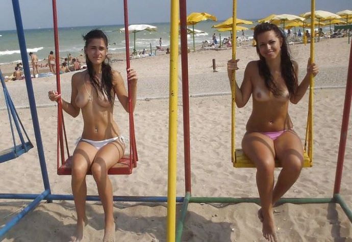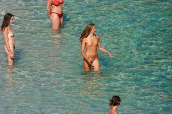 Я бы не сказал, что это совсем нудизм, просто красивые девушки с упругим и молодым телом загорают на пляже без купальника и показываю маленькие сиськи всем на показ.