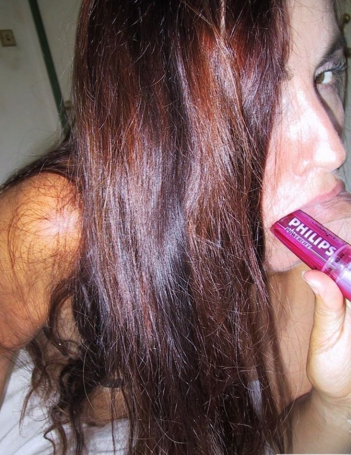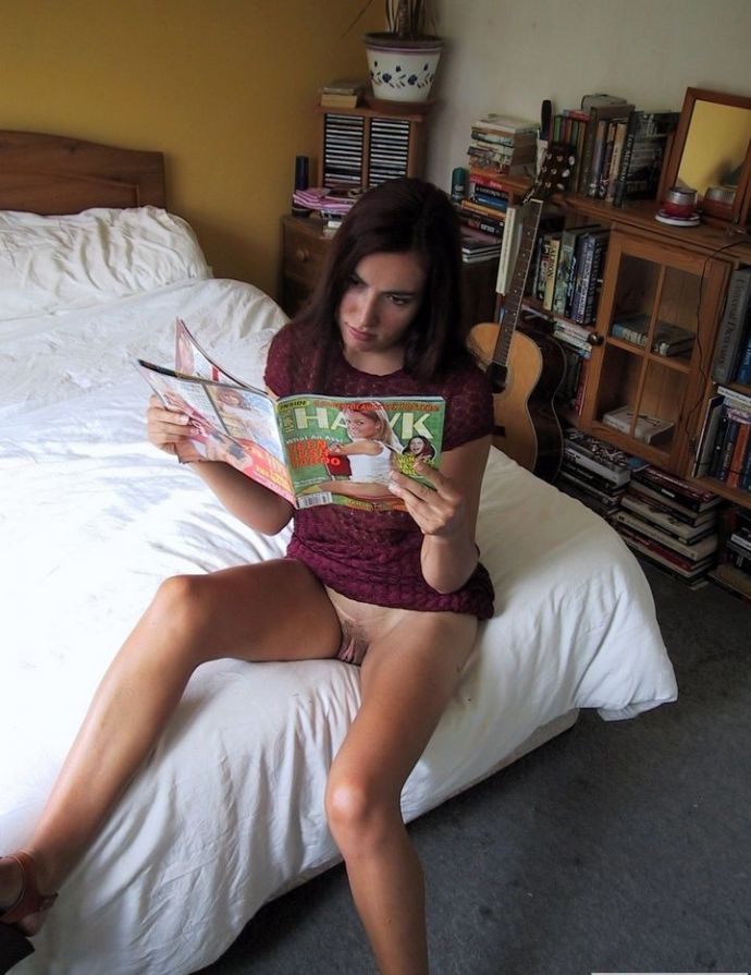 Супруга любит секс в кожаном бондаже. Ремни с металлическими наклёпками стискивают женскую грудь, животик, ягодицы, выбритый лобок брюнетки, выделяя половые губки. В таком наряде женщина-нимфоманка играет то с дилдо.