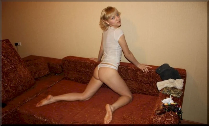 Заводная русская жена позирует на диване перед объективом своего возлюбленного