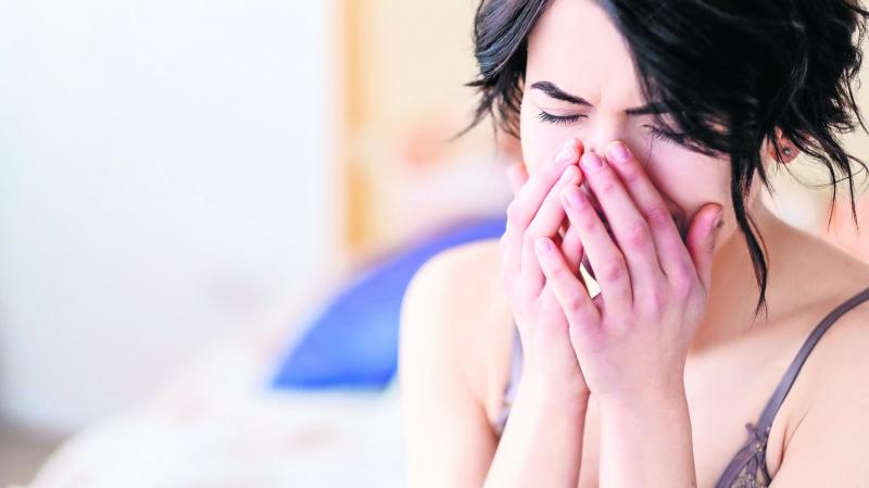 Рыдающая дама закрывает лицо руками