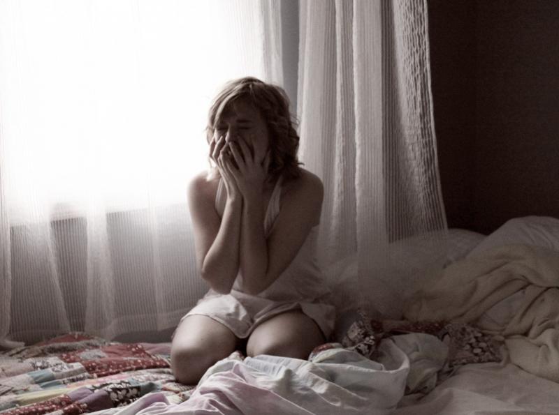 Мать плачет в кровати