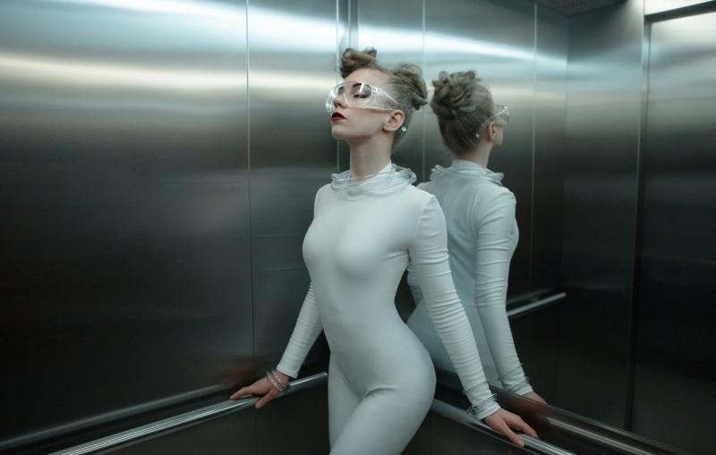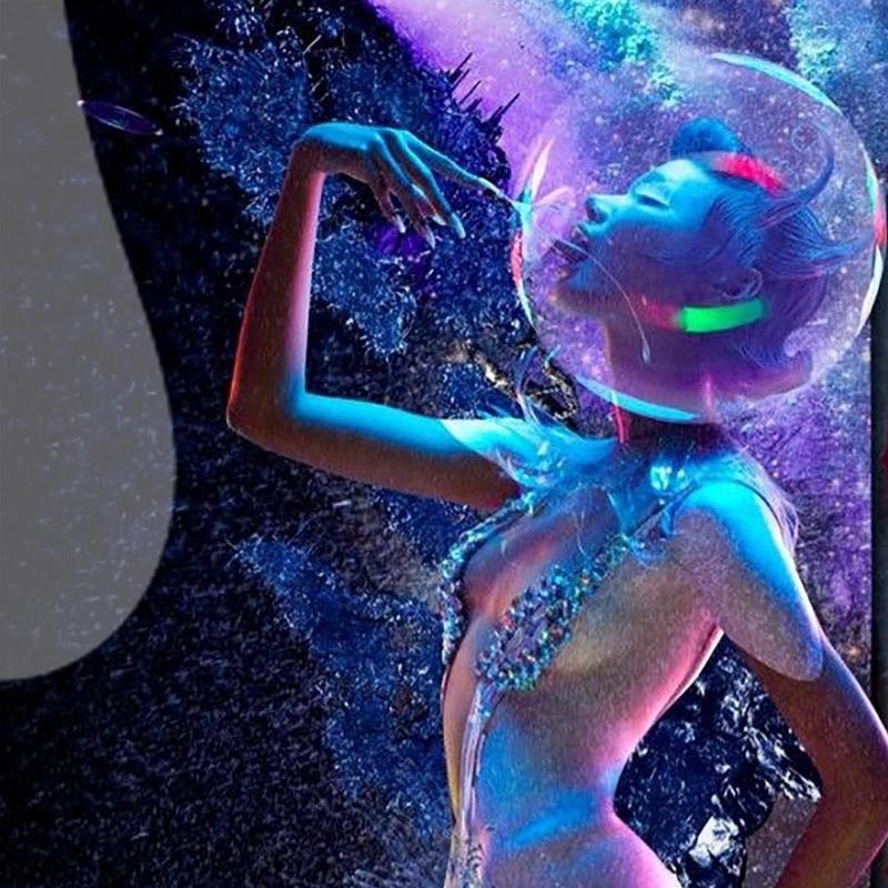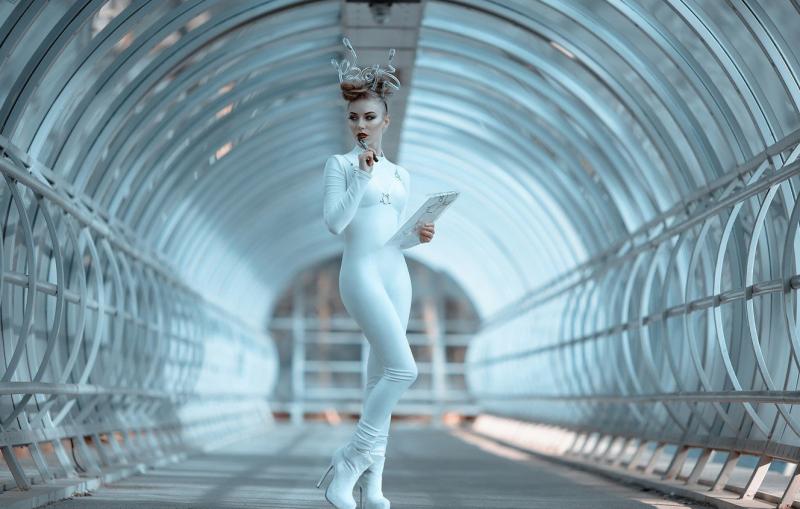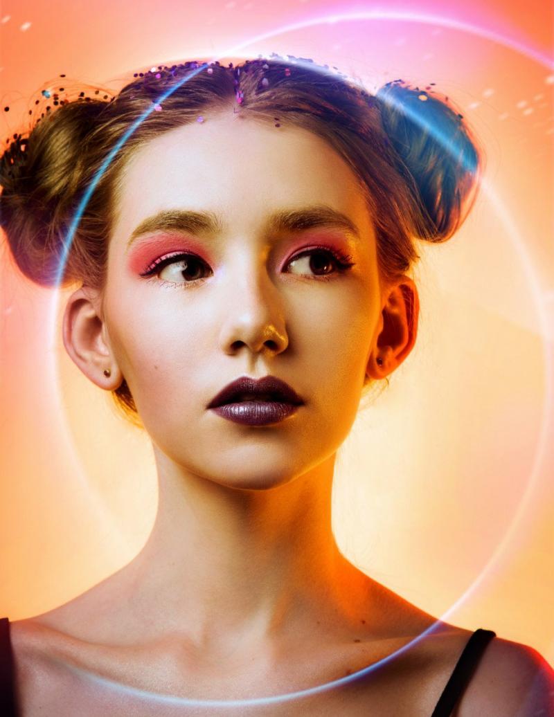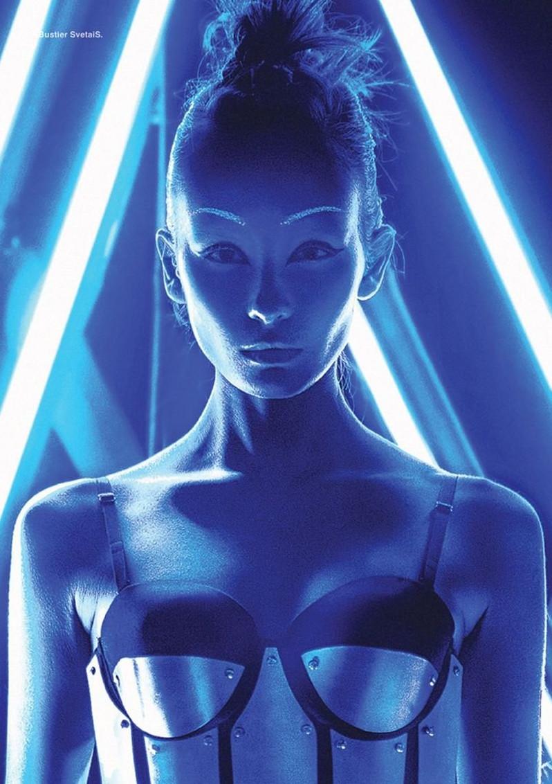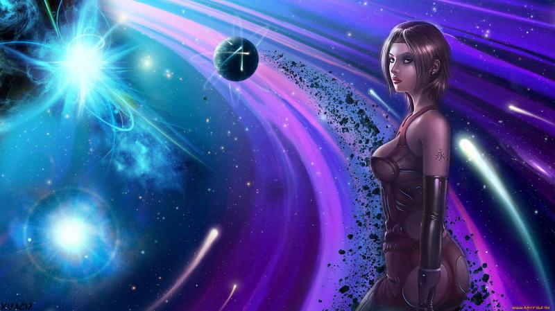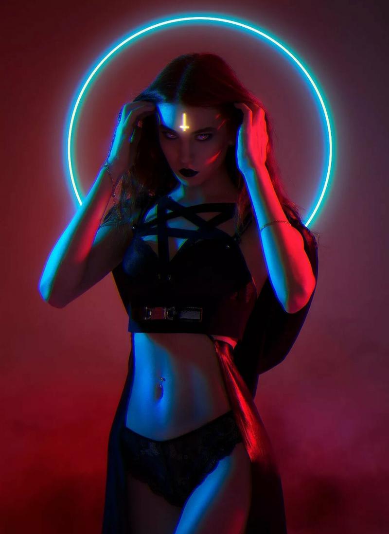 Очень сексуальная девушка красотка с фиолетовыми волосами