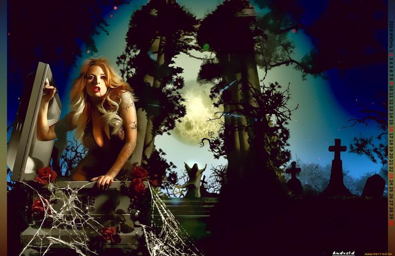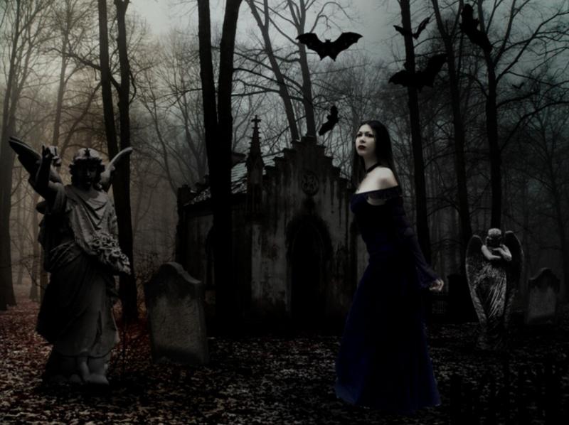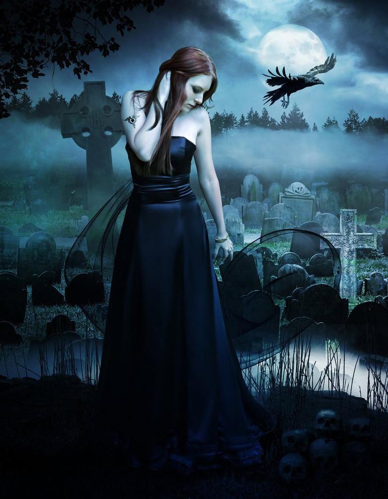 Рисунки кладбища ночью с девушками
