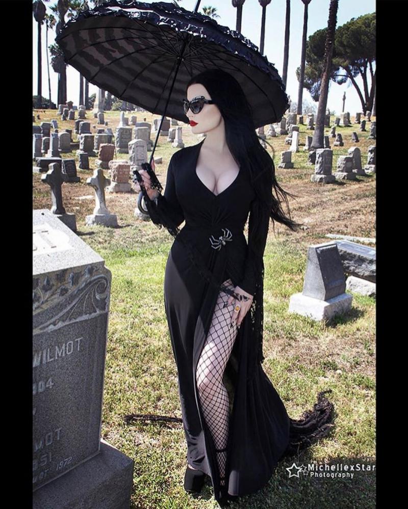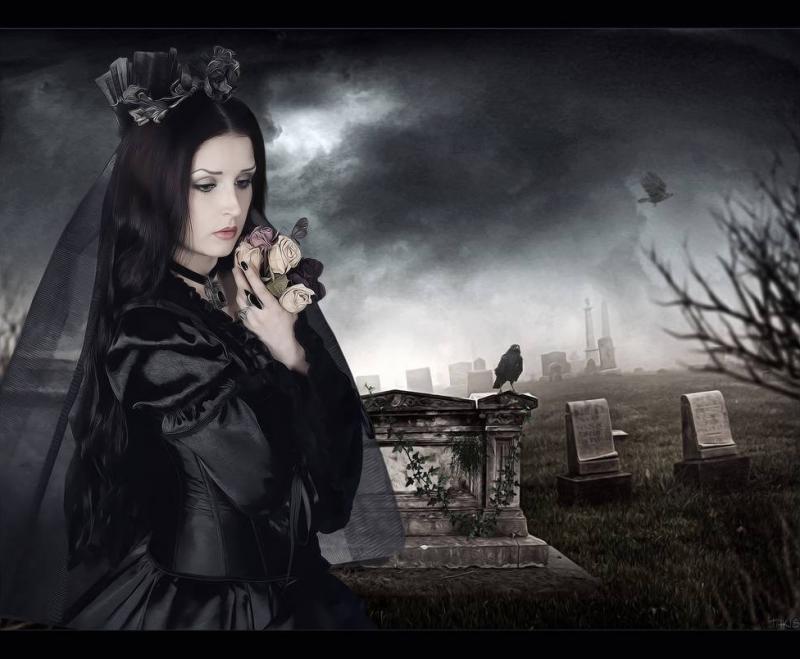 Девушка красотка в черном на кладбище очаровательные рисунки.