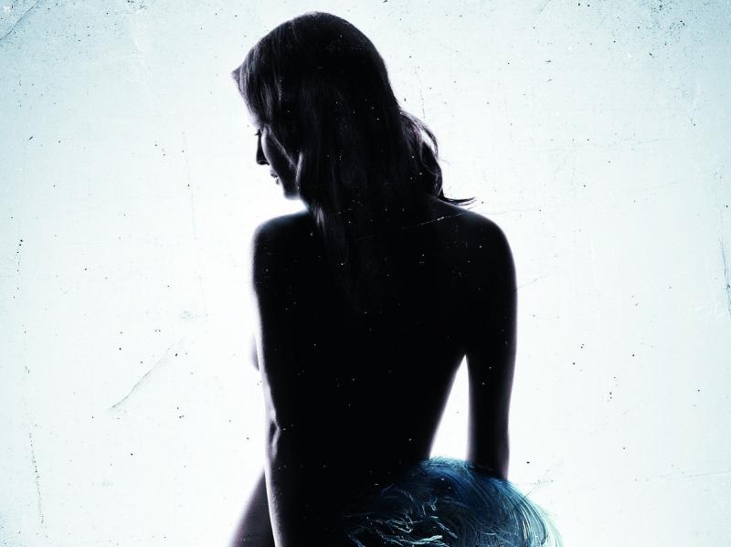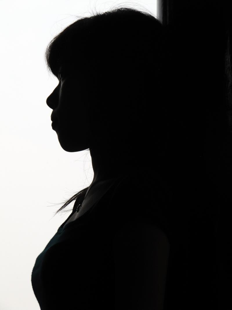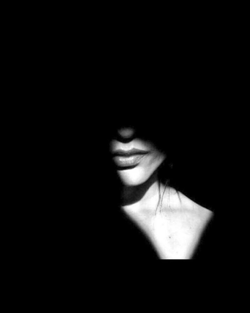 Силуэт девушки в серьгах с чёрными бриллиантами в темноте фото