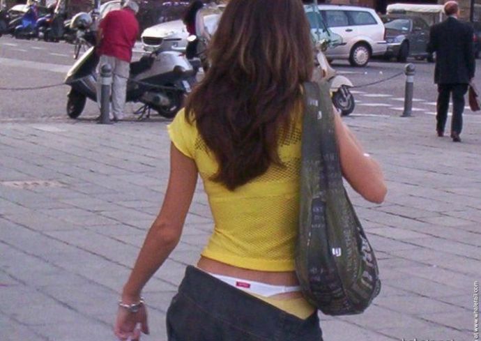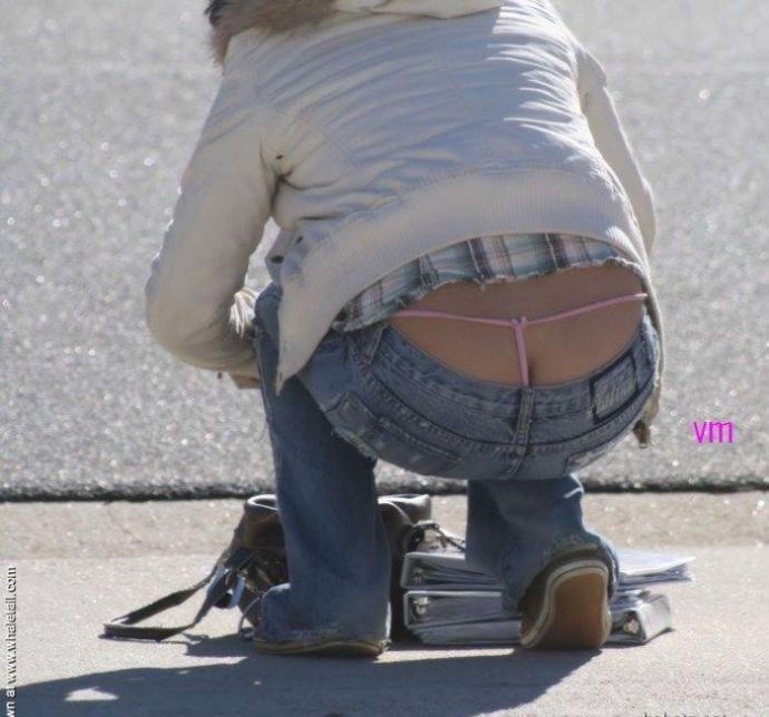 Иногда идешь по городу, а тут нагибается девушка раком и видно пол жопы, у которых в промежность впиваются стринги, потом идешь и подул ветерок и снова трусы видны из под юбки, так вот сегодня именно такая коллекция для тебя.