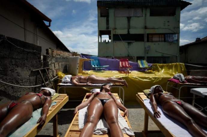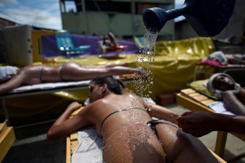 У бразильских женщин очень симпатичным считается иметь безупречные полосы от бикини после загара. Этим пользуются местные бизнесмены, они арендую крыши, где с помощью изоленты достигают идеальных линий от бикини. В Бразилии сейчас температура воздуха доходит до 30 градусов тепла, на одной маленькой крыше можно обслужить около 30 клиенток. Стоит такая процедура R$70($21), повторно закрепить результат обойдется в R$50($15).